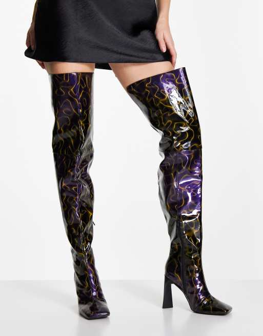 Multi colored thigh high clearance boots